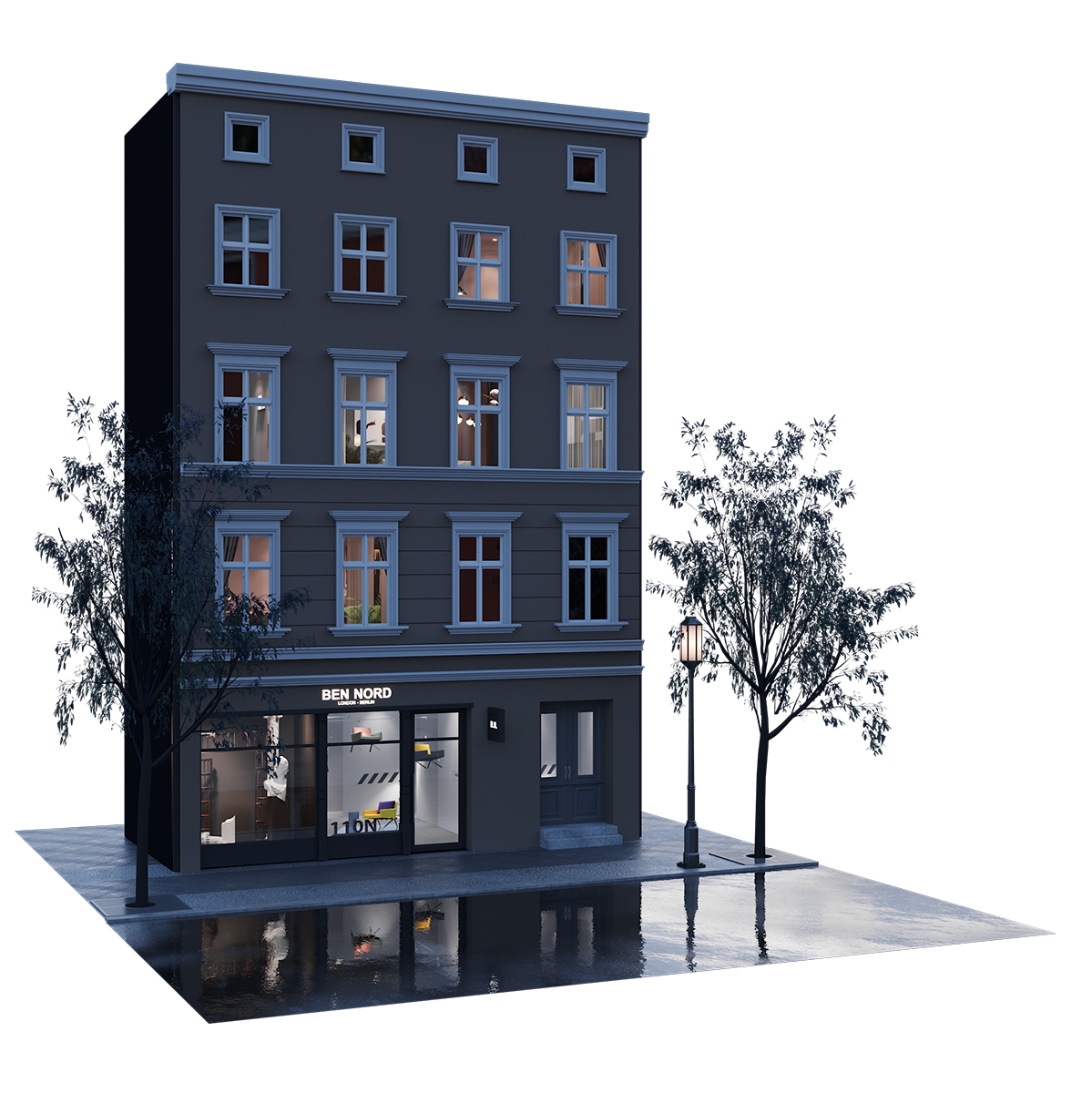 - 3D Scene (7 facades + street)