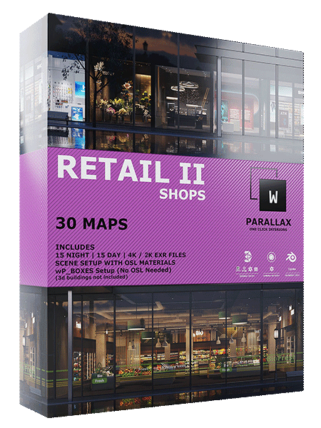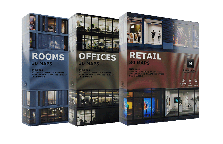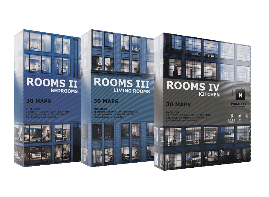 - 6 Parallax maps (2 Rooms day/night, 2 Retail) 3K / 1K